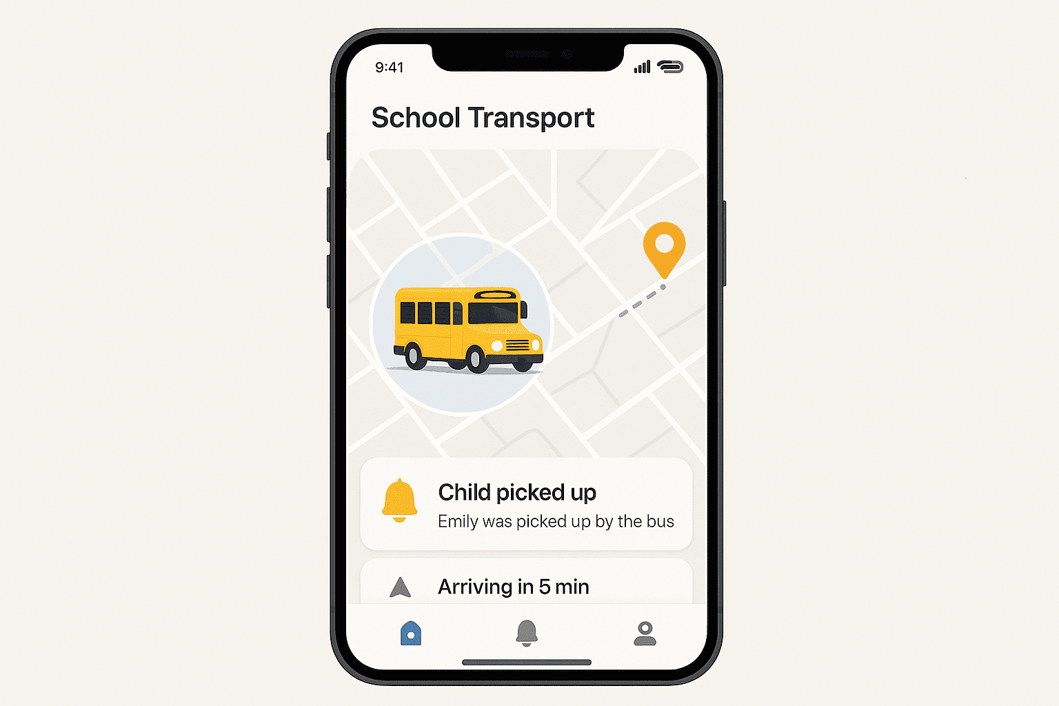 Parents can track their child's bus location in real-time, receive pickup and drop notifications, and stay informed about transport schedules through the dedicated parents mobile application.